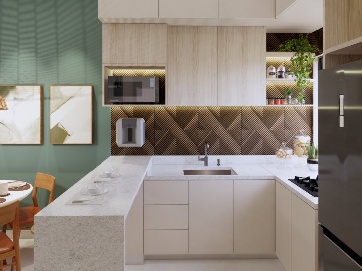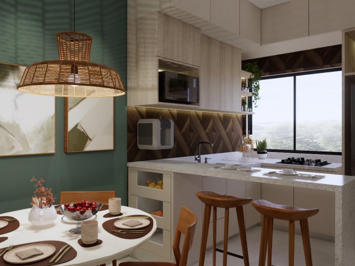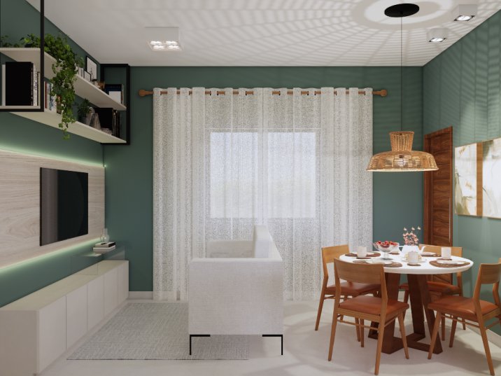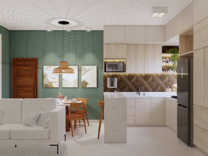 Este projeto foi desenvolvido para um jovem casal sem filhos, que buscava funcionalidade e aconchego em um espaço compacto. A proposta priorizou a integração entre sala de estar, jantar e cozinha, garantindo amplitude e melhor aproveitamento da área.