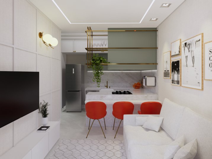 Este Studio de aproximadamente 37m² foi projetado para aluguel, com foco em um casal que busca conforto e praticidade sem abrir mão da elegância. A proposta seguiu uma estética clean e sofisticada, criando uma atmosfera leve e acolhedora.