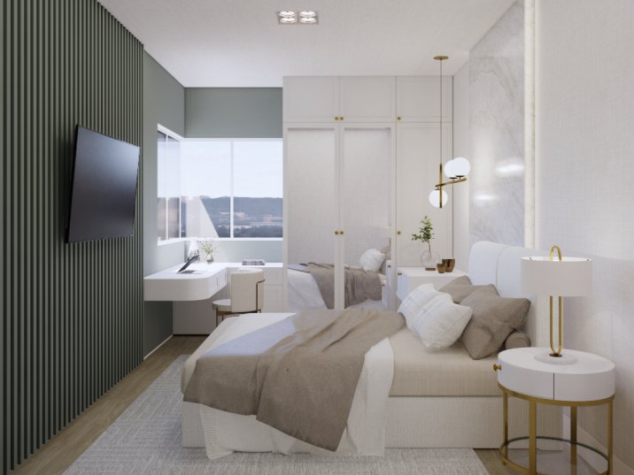 Cada espaço foi pensado para garantir funcionalidade e aproveitamento inteligente da metragem, com soluções de armazenamento discretas e eficientes. A paleta de cores neutras e os materiais cuidadosamente selecionados contribuem para uma ambientação atemporal, garantindo versatilidade para diferentes estilos de moradores. O resultado é um Studio compacto, mas completo, que une beleza, conforto e otimização do espaço.